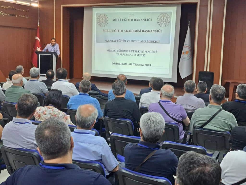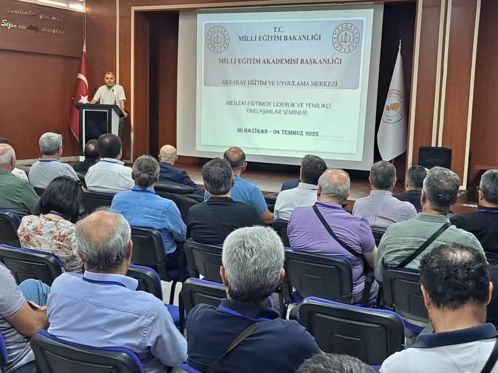 Eğitim ve Uygulama Merkezimizde Düzenlenen 30 Haziran – 04 Temmuz 2025 Tarihli Mesleki Eğitimde Liderlik ve Yenilikçi Yaklaşımlar Semineri, İzleme, Değerlendirme ve Kalite Geliştirme Daire Başkanı Sayın Muzaffer AYDIN, İl Milli Eğitim Müdürlüğünden Şube Müdürü Sayın Ali UZUN ve Milli Eğitim Akademisi Başkanlığı Aksaray Eğitim ve Uygulama Merkezi Müdürümüz Sayın Yakup YILDIRIM’ ın açılış konuşmaları ve kursiyerlerimizin katılımlarıyla eğitime başlamıştır.